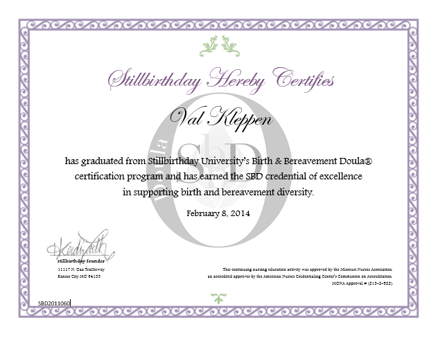 Here at stillbirthday.info, you can learn about the SBD® Doula.