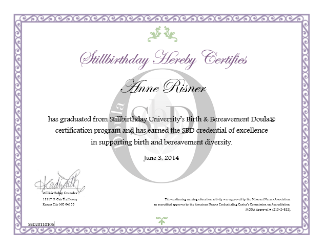 Here at stillbirthday.info, you can learn about the SBD® Doula.