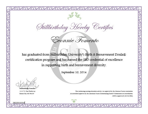 Here at stillbirthday.info, you can learn about the SBD® Doula.